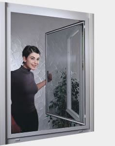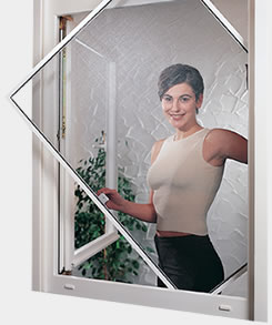 Spannrahmen für Fenster Dieses äußerst funktionelle Element ist eine preisgünstige Variante zum Drehrahmen. Es eignet sich hervorragend für Fenster und Türen, die nur zum Lüften geöffnet oder gekippt werden. Dank praktischer Einhängevorrichtungen können die Spannrahmen jederzeit mit einem Handgriff, z.B. zum Reinigen des Fensterbretts, entfernt werden. | ![]() |